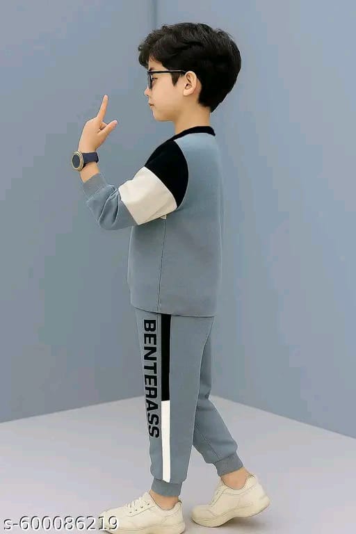 Bentgrass Benterass Boys and Girls Tracksuit Kids Wear Sweatshirt & Lower Set | Stylish Grey & Black Kids Clothes Combo Wishlist